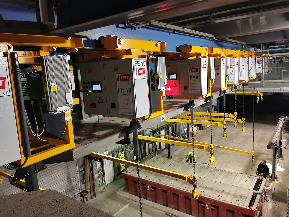 GAT hat die Anlage der Firma WIEGEL in Jena erfolgreich modernisiert. Die Herausforderung bestand darin, eine manuell betriebene Anlage auf teilautomatischen Betrieb umzustellen. Das Ergebnis ist eine flexible Anlage, die nach Bedarf zwischen manuellem und automatischem Betrieb wechselt. Die Modernisierung umfasste die Installation einer neuen Automatikanlage, die Implementierung von 10 neuen Fahreinheiten, eine Überholung der Schleifleitung, automatisierte Drehweichen und ein neues Barcode-Wegmesssystem.