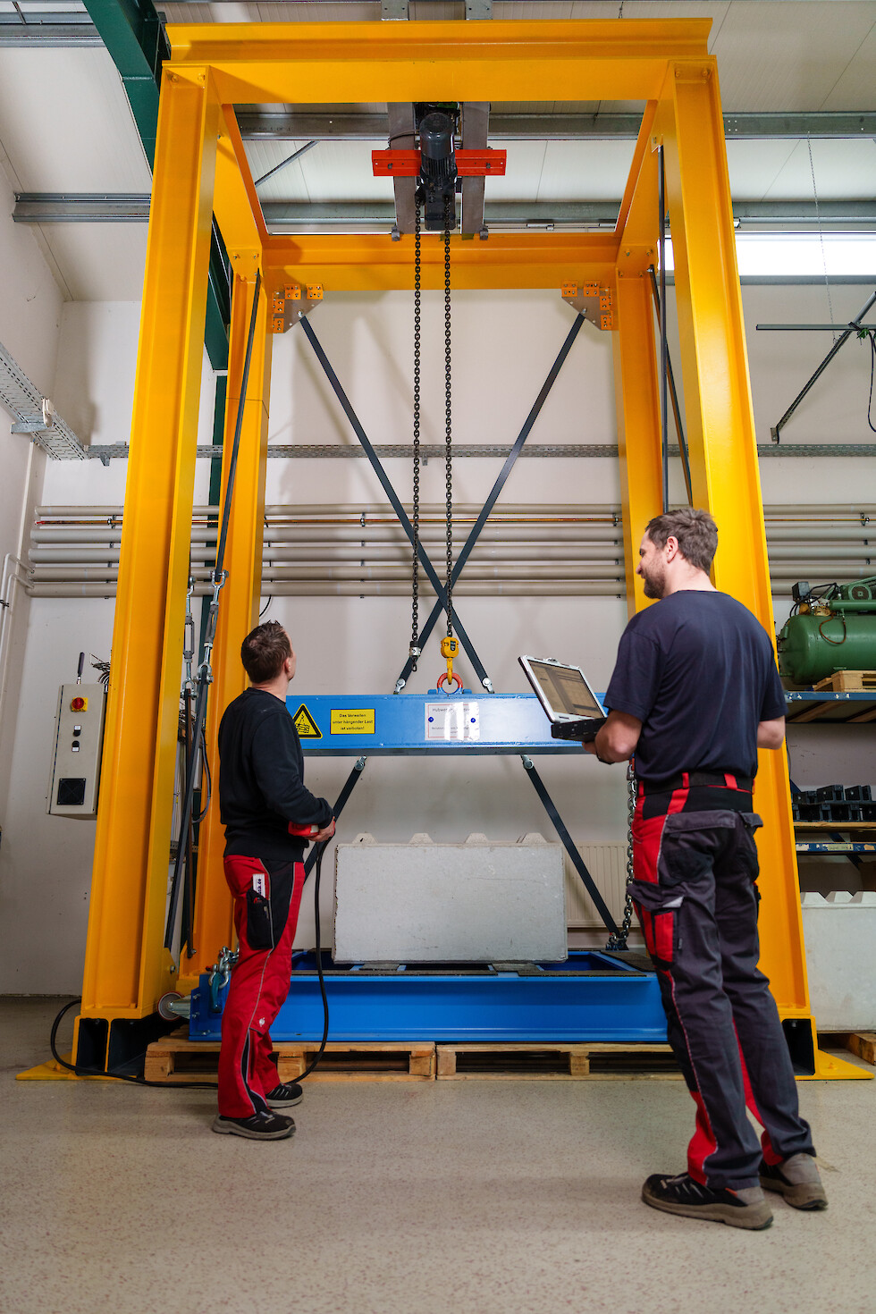Unsere neue Hubwerkstestanlage bietet überdies die Möglichkeit, neben einzelnen Hubwerken auch komplette Fahreinheiten vorab zu checken. Dadurch heißt es auf der Baustelle dann nur noch: Fahreinheit auf die Monorail bringen, einschalten und – läuft!